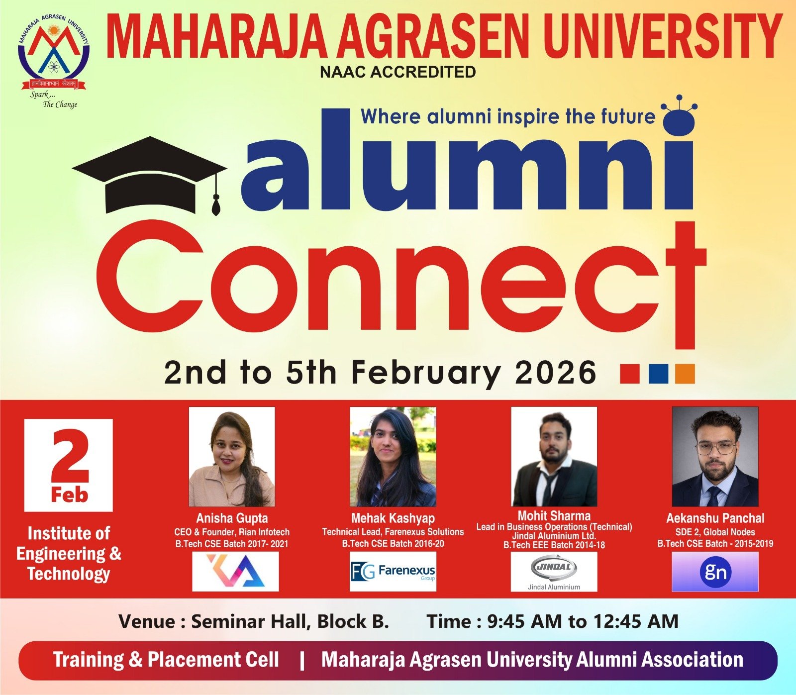 30th January 2026 Maharaja Agrasen University, Baddi proudly organising Alumni Connect-MAIT on 2nd February 2026 |